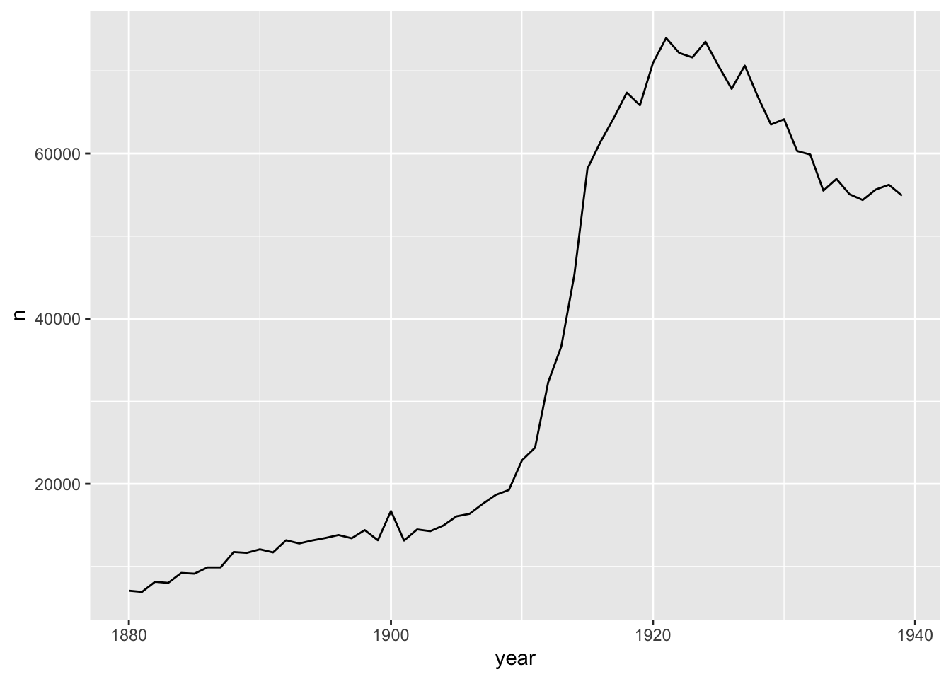 $ year: num [1:1924665] 1880 1880 1880 1880 1880 1880 1880 1880 1880 1880 ...
