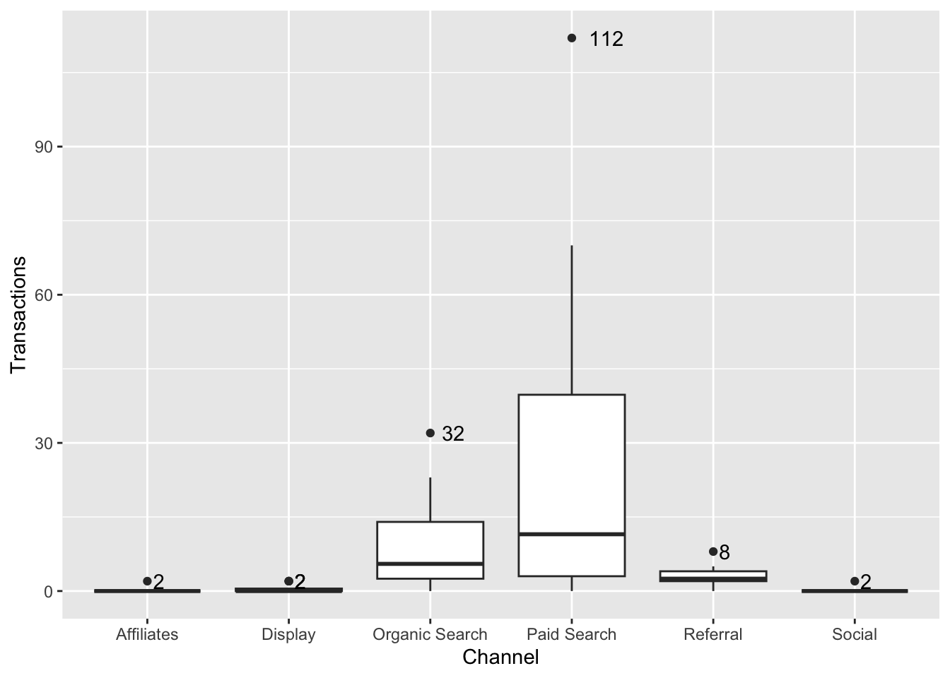 ggplot(my_data_outlier, aes(x=Channel, y=Transactions)) +